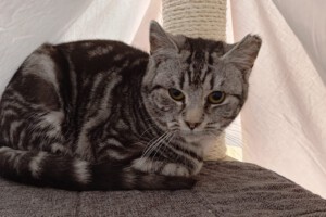 Die silbrige Schönheit Perlu kam im Rahmen einer großen Fangaktion zu uns in den Tierschutz. Sie und ihre Familie lebten auf einem Campingplatz mit recht wenig Menschenkontakt und waren anfangs sehr scheu. Perlu lebt noch sehr in ihrer Wildimentalität und ist bis jetzt nicht besonders an Nähe zum Menschen interessiert. Klar ist, dass der Tierheimalltag ihr im Weg steht und mit zu viel Stress und Einflussfaktoren daher kommt, um ihr eine faire Chance zu geben, etwas aufzutauen.